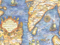 アンティークなカラーの世界地図風の柄です。