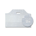 持ち手用の穴があいたポリ袋です。レジ袋よりも厚みがあって、しっかりしています。底マチが広いので、ケーキ箱や食パンを入れるのに適しています。両面印刷(半透明素材に白色印刷)です。