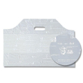持ち手用の穴があいたポリ袋です。レジ袋よりも厚みがあって、しっかりしています。底マチが広いので、ケーキ箱や食パンを入れるのに適しています。両面印刷(半透明素材に白色印刷)です。